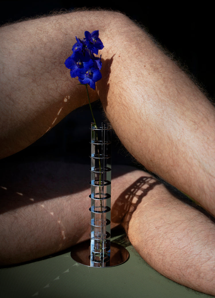 Elevate any bouquet with this unique vase. A glass cylinder wrapped in a geometric grid lets you place flowers from the top or sides—creating bold, modern arrangements with just a few stems. Stainless steel and glass. Dishwasher safe. Made in Germany.